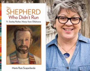 The deacons speak with Maria Ruiz Scaperlanda, author of “The Shepherd Who Didn’t Run: Fr. Stanley Rother, Martyr from Oklahoma.”