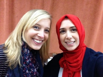 We like to say that our friendship is God-inspired and that God had us collaborating from day one. In late 2011, Michal and her church community organized a Christian-Muslim “Meet Your Neighbor” event at a local mosque. Sondos, a board member of that mosque, emceed the event alongside Michal. We met for the first time in person a few minutes before the event and then jumped into planning/work mode. From the start, we worked well together and found that we had plenty in common, from our age (born 15 days and 5 hours apart) to our hobbies and aspirations. That evening was also the beginning of what is now a familiar refrain to us from people: “You two look like sisters!”