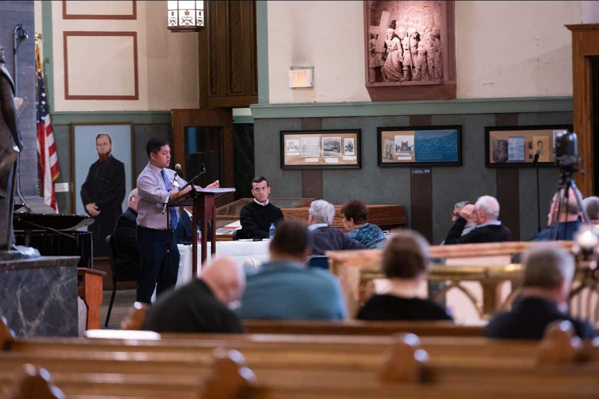 Mike Hayes speaks with Paulist Associate Barbara Lapinskas.