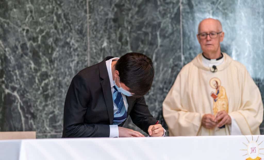Luke Heffernan, 23, and Zachary Turner, 27, “signed in” to our novitiate during a special Mass on Saturday, August 22, 2020, at St. Joseph’s Seminary in Washington, D.C.