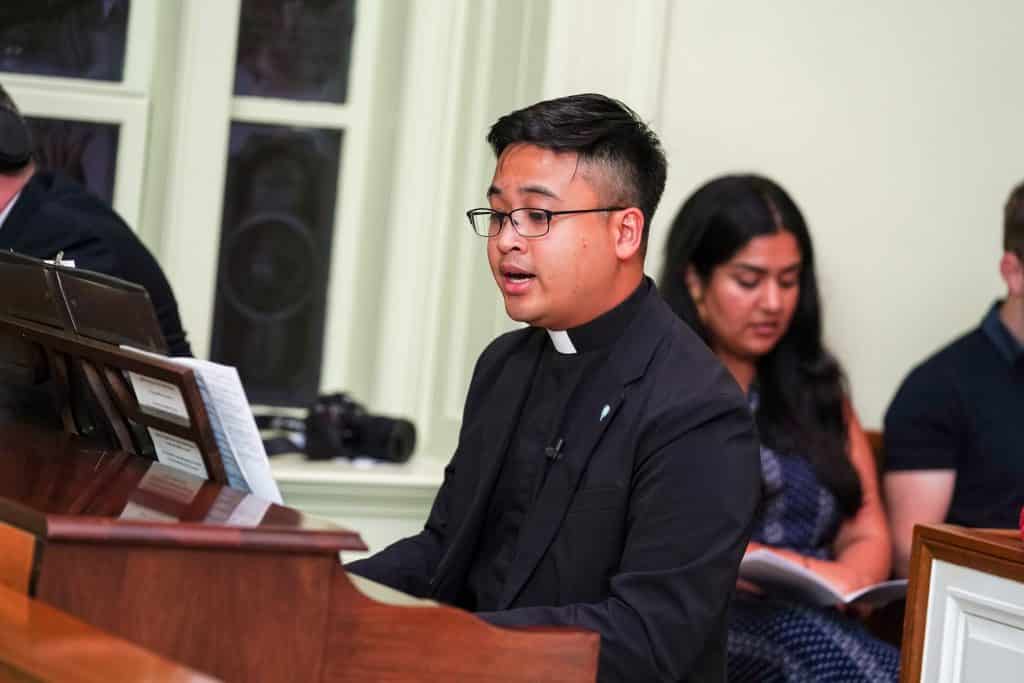 Dan provides music at the September 2019 Mass in Washington, D.C. that welcomed new novices and saw seminarians reaffirm their promises to the Paulist Fathers.